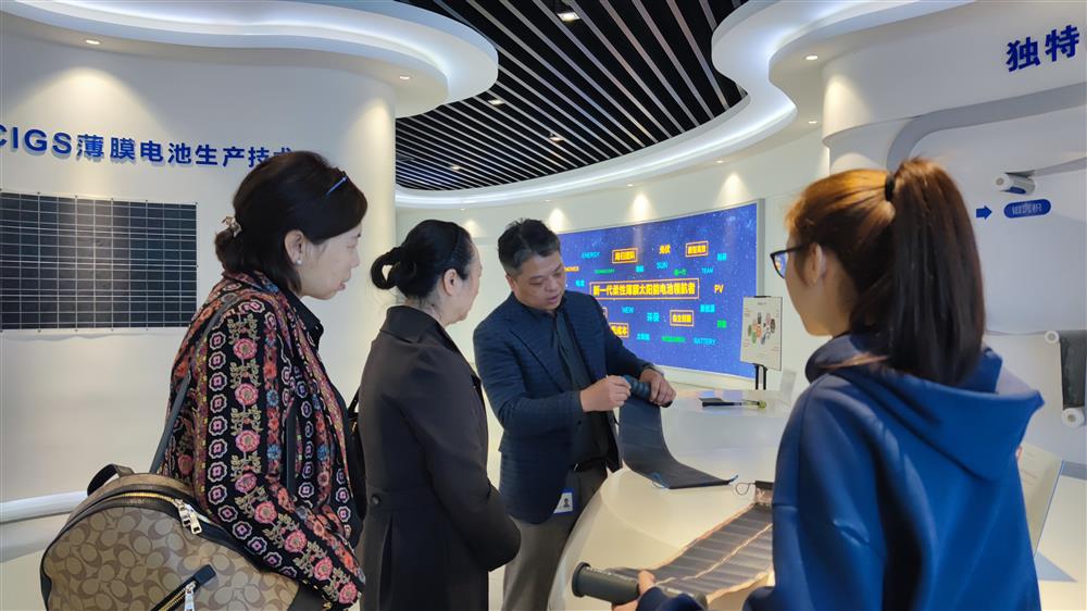 11月23日上午,秘书处走访会员单位尚越光电科技股份有限公司,总经理任宇刚在介绍光伏产品