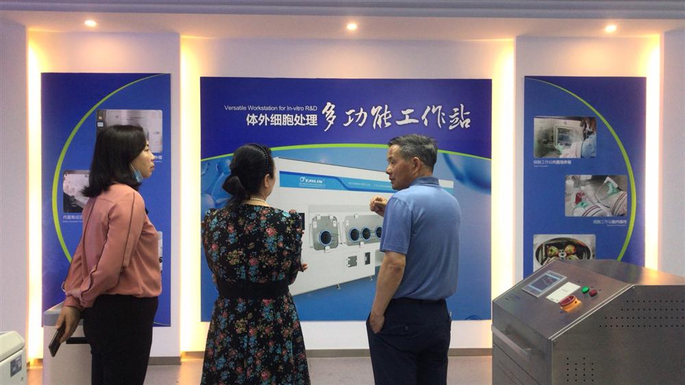 5月7日,泰林生物董事长叶大林为秘书长介绍高科技设备的用途和功能