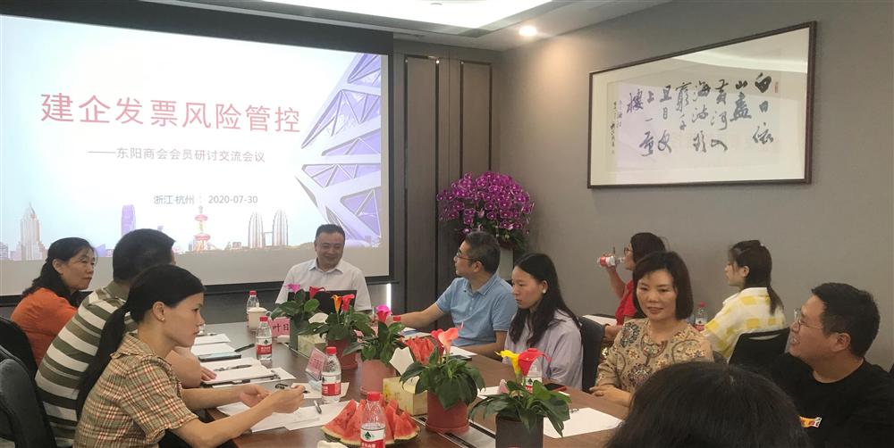 7月30日下午,杭州市东阳商会在保利中心1605室举行了建筑施工企业进项发票风险管控研讨培训活动,这是商会乔迁新址后第一次为会员单位举办培训活动,前来学习的有歌山建设集团、浙江三方建设、浙江鼎坤建设、浙江绿驰景观、浙江恒科建筑、浙江江天建设等15家建筑施工企业的主要负责人及财务人员,与会人数达30多人。本次活动邀请了杭州微工科技有限公司总经理叶日发先生为大家主讲,由商会周园英副秘书长主持。