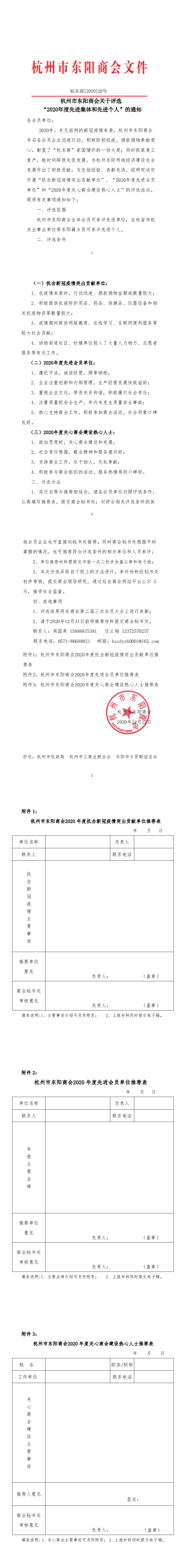杭州市东阳商会关于评选 “2020年度先进集体和先进个人”的通知