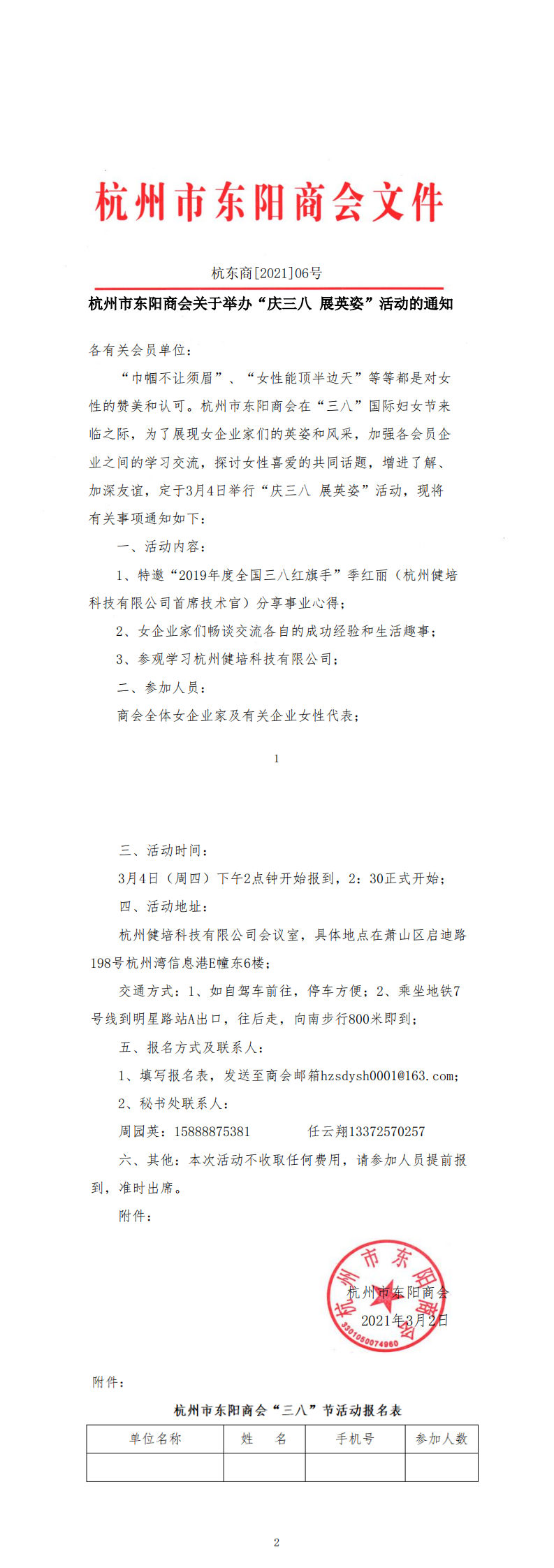 杭州市东阳商会关于举办“庆三八 展英姿”活动的通知