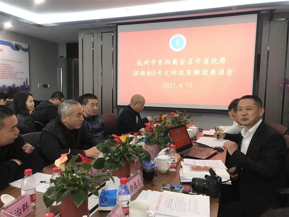 4月15日下午,东阳乡贤曹永泽为会员们解读省政府[2021]5号文件招投标政策新规定