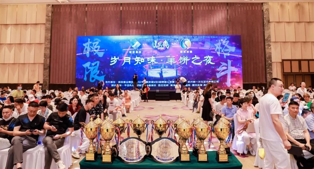 7月18日晚上,杭州市东阳商会组织会员观看了“岁月知味 羊饼之夜”真武魂WBK世界极限格斗联赛。赛事由商会理事单位杭州福润堂参茸有限公司总经理厉志伟(20世纪80-90年代拳击、散打赛TOP得主、技击名家、知名教练、名徒高徒无数)的弟子主办。为弘扬中华武术,振奋民族精神,厉总特意为商会会员提供了一次免费观看大赛的机会,厉瑞强、史永进、任江峰、王武威、葛龙刚等30多位会员及副秘书长周园英到萧山区宝盛水博园会展中心现场观看了这场大型国际比赛,现场观众上千人。