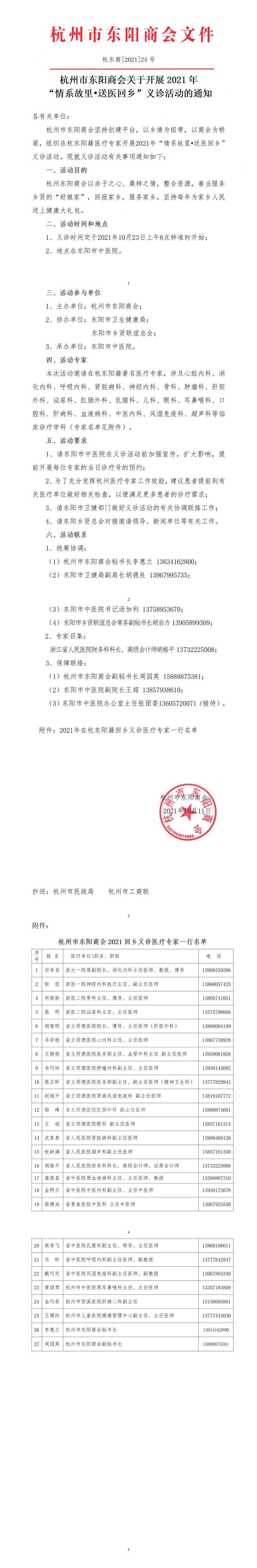杭州市东阳商会关于开展2021年 “情系故里 送医回乡”义诊活动的通知