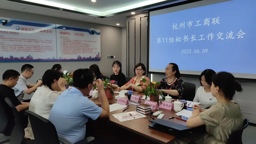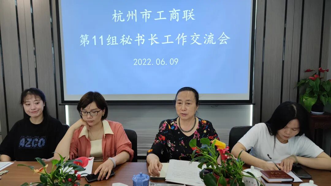 第11组组长杭州市永嘉商会秘书长叶建晓表示永嘉商会上半年线下活动相对减少,但随着疫情缓解活动会逐渐增多。她重点传达了杭州市工商联会议的精神:一是要求每个商会组织一家企业于6月16日到杭师大设置招聘摊位;二是各商会秘书处需要可接受杭师大毕业生的常态化实习机会,合格留用或推荐给会员单位,帮助解决就业问题;三是汇总会员单位的招聘岗位,尽可能就近利用人才。