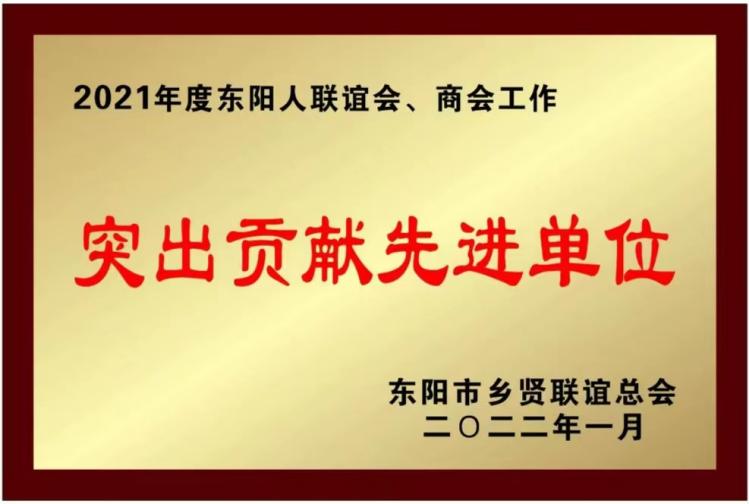 杭州市东阳商会坚持以习近平新时代中国特色社会主义思想为指导,认真贯彻党的十九届六中全会和省第十五次党代会精神,在以楼永良会长为首的核心团队领导下,经过全体会员的共同努力和在杭乡贤的关心支持下取得了较好的成绩。在东阳市乡贤联谊总会对全国各地东阳人联谊会、商会2021年度的工作考评中,本商会喜获多项荣誉:1、荣获全国各地东阳人联谊会、商会建设2021年度评比“特等奖”,此奖项仅北京、杭州、上海三家;2、2021年度东阳人联谊会、商会先进单位的表彰中荣获“突出贡献先进单位”;3、商会俞蘠、郡君芳、吴跃荣获“突出贡献先进个人”;4、商会杜德韩、施秀伟、金局民、蔡琳红、李建中、陈新敏和乡贤厉有名、黄丽琴荣获“先进个人”光荣称号。