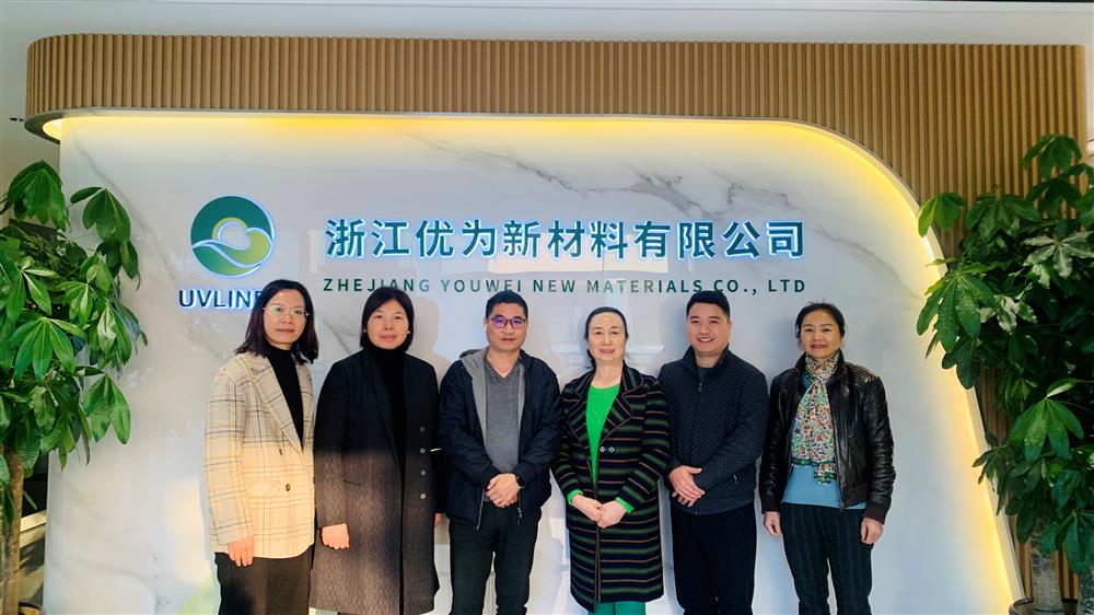 12月12日,秘书处李惠兰一行与浙江优为新材料有限公司董事长王黎明等公司管理层合影留念
