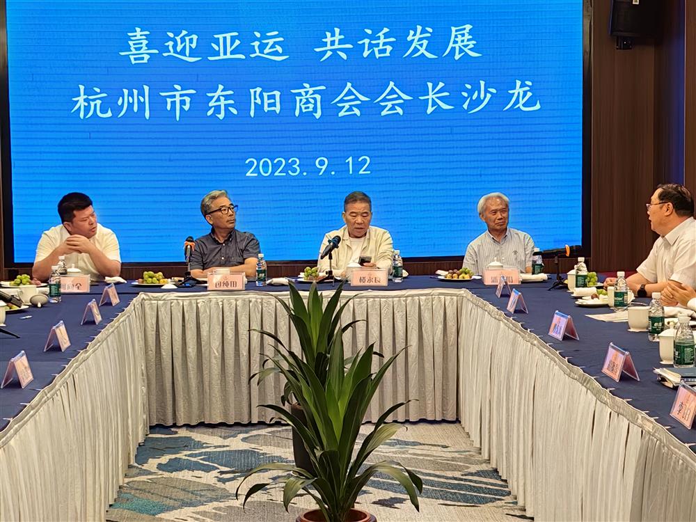 9月12日下午,杭州市东阳商会在杭州第19届亚运会即将隆重召开之际举行了“喜迎亚运 共话发展”会长沙龙,活动在执行会长单位歌山建设集团有限公司品悦大酒店举行。商会会长、中天控股集团董事长楼永良,执行会长、歌山集团董事长何向全,常务副会长、野风集团董事长俞蘠、威星电子系统软件公司董事长傅东风、恒和时代控股董事长李军,监事长、锦怡餐饮董事长施秀伟,副会长、筑工科技董事长杜德韩、三方建设董事长吴祖跃、康诺邦健康产品董事长胡钢亮、鼎坤建设董事长陈再荣、乐活控股董事长葛金伟、欣捷控股副董事长李飞白、华洋缝制董事长徐凤南等近20人参加了沙龙。会议特别邀请了优秀乡贤、浙大金融经济研究院副院长包纯田教授为会长们作当前形势下民营企业经济发展和目标方向的形势分析预判。省国土资源厅原副厅长、副书记潘圣明、建设银行浙江分行副行长兼杭州分行行长叶进出席会议。执行会长何向全主持本次沙龙。