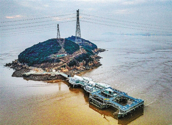 位于舟山秀山岛南部海域的浙江LHD海洋潮流能发电站,俯瞰像一把小提琴。