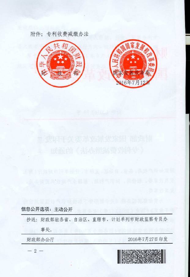 财政部 国家发展改革委关于印发《专利收费减缴办法》的通知