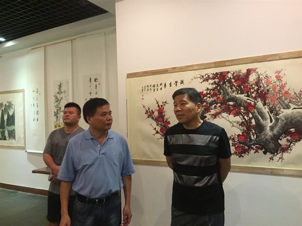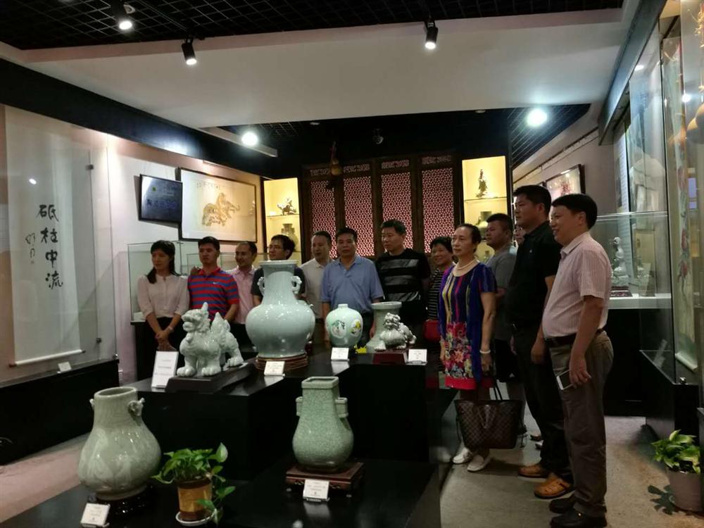 杭州市东阳商会根据楼永良会长对加强企业文化交流,会长之间要多互相学习的要求,于8月21日下午,承蒙何宝其副会长的盛情邀请,在杭州西湖文化广场西冷印社405号“御富永藏”举行了名家字画、官窑青瓷等名品欣赏活动。参加这次活动的有会长楼永良、执行会长何向全等10多位副会长。何宝其首先畅谈了当年怎样结识了文化名人的渊源,同时对齐白石、白雪石、启功、王成喜等名家杰作一一介绍,还对中国书协舒同、启功、沈鹏、张海等四任主席的书法作品分别作了讲解。