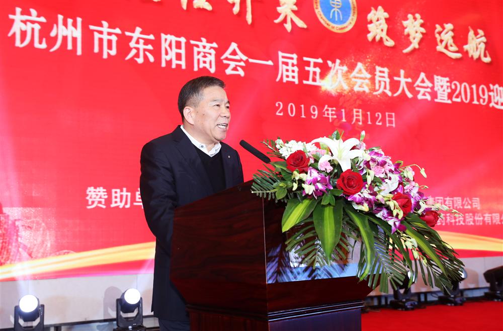 杭州东阳商会会长、中天控股集团有限公司董事长楼永良致辞。首先对关心支持商会工作的各位领导、各界宾朋乡贤、以及全体会员致以诚挚的感谢和美好的祝福!2018年,东阳商会坚持“天下同利,和合共赢”的办会理念,发展会员,凝聚会员,回馈会员,团结奋进,共谋发展。2019年,楼会长引用习近平总书记的话“要以坚如磐石的信心、只争朝夕的劲头、坚韧不拔的毅力,一步一个脚印把前无古人的伟大事业推向前进。”他说在这样的风雷急荡中,让我们继续彰显东阳人的英雄本色,借助商会搭建的良好平台,一起抱团取暖、相互扶持、携手共进,在冬日的阳光下逆风飞扬,共同创造更加美好的未来。