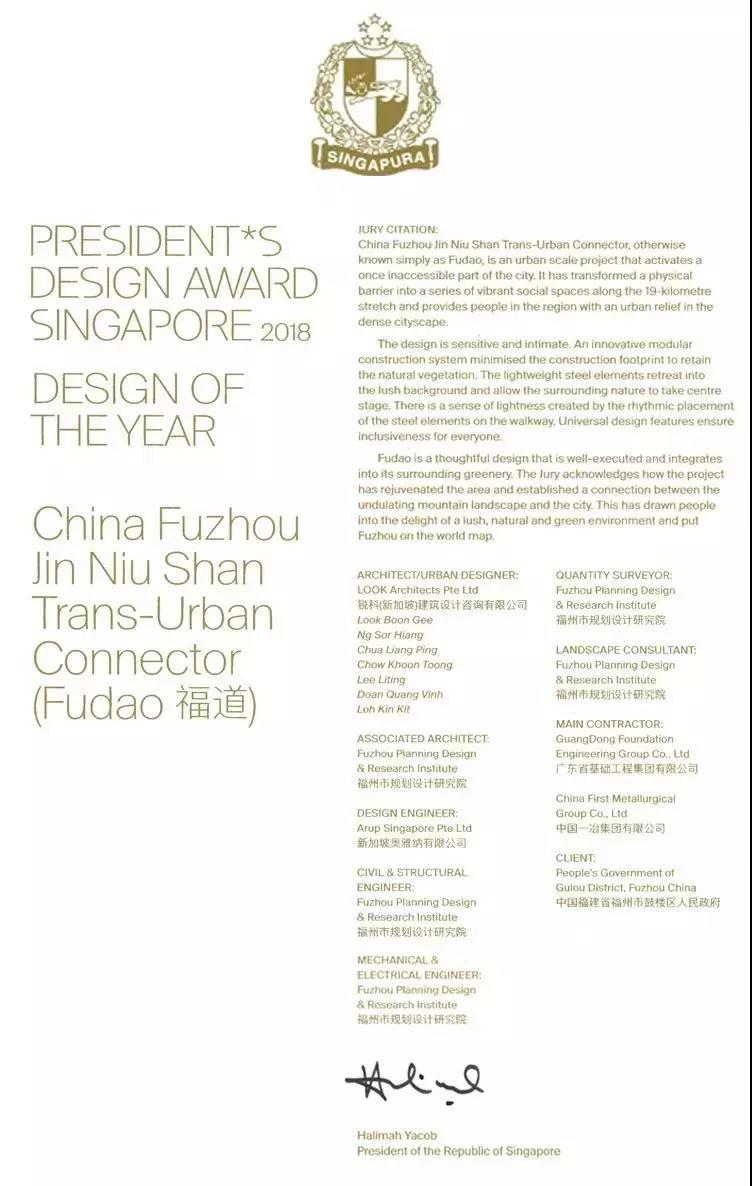 福道人性化的设计及融于自然的巧妙构思,使其先后荣获2017年“国际建筑大奖”、2018年“新加坡总统设计奖”。