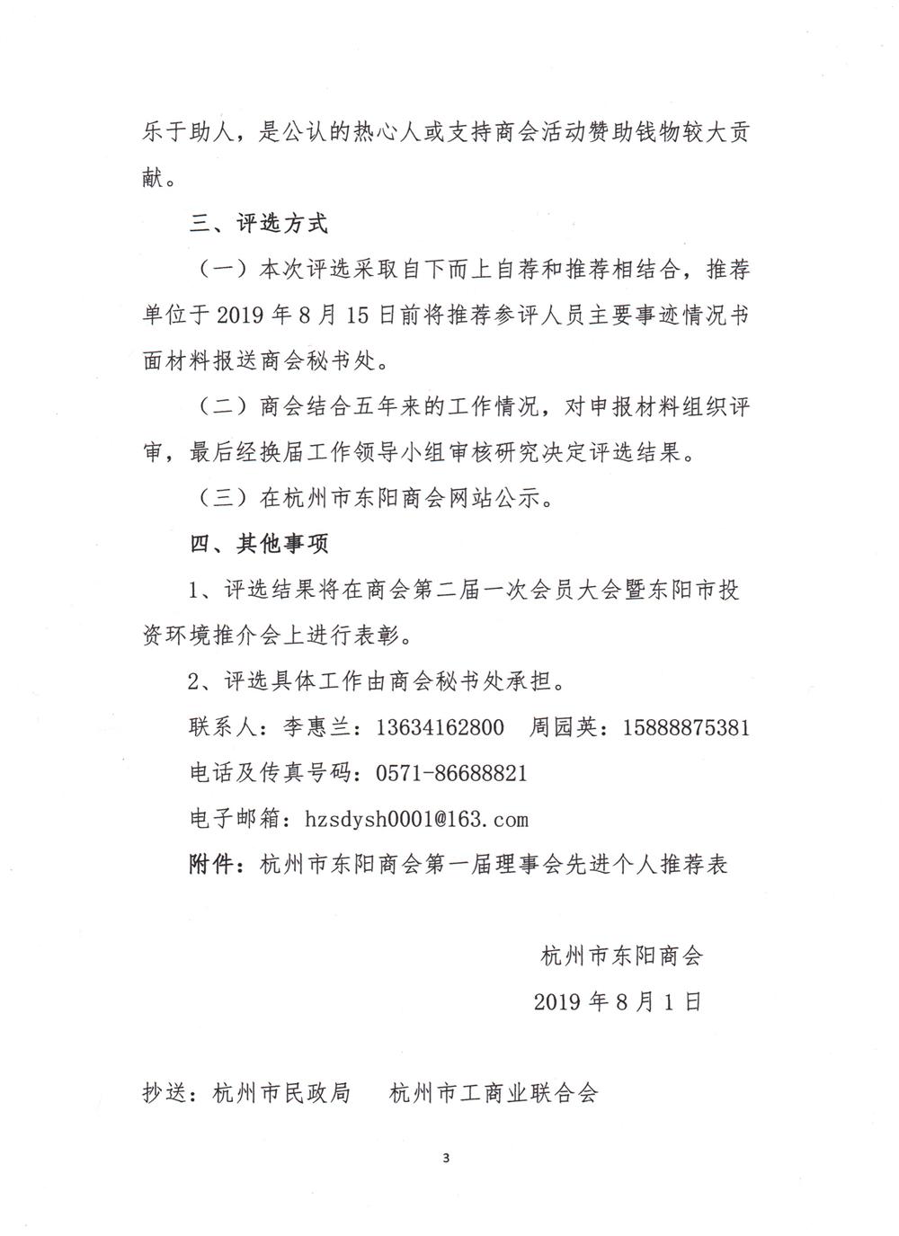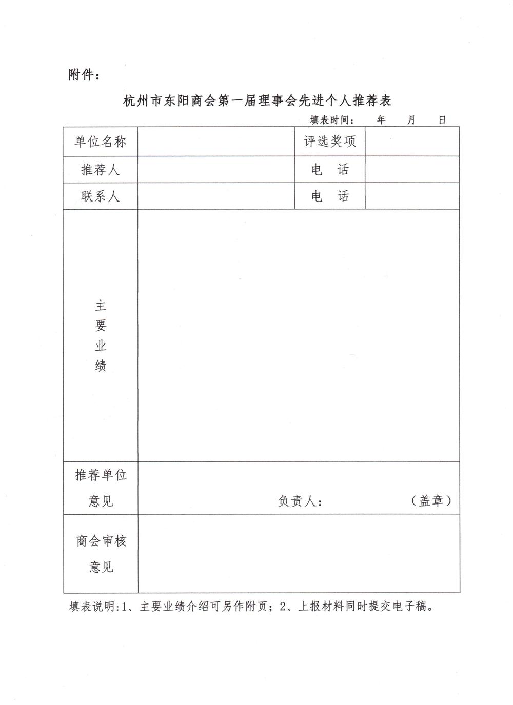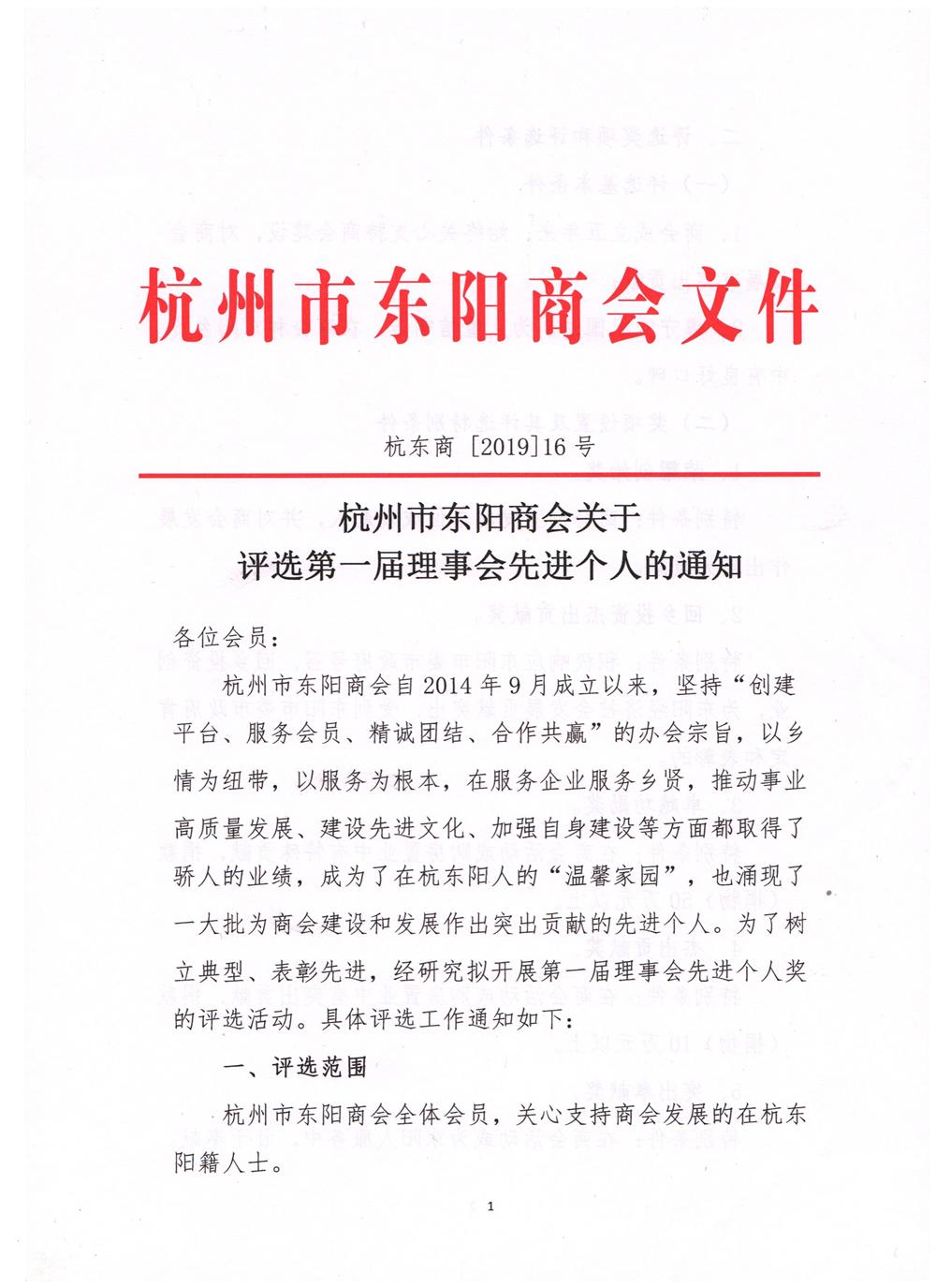 杭州市东阳商会关于评选第一届理事会先进个人的通知