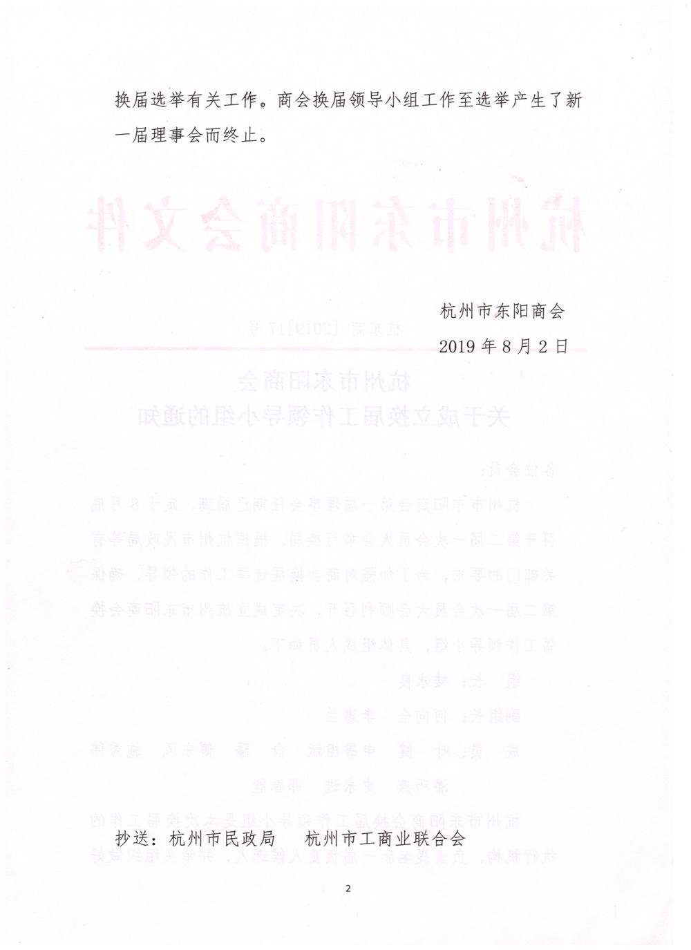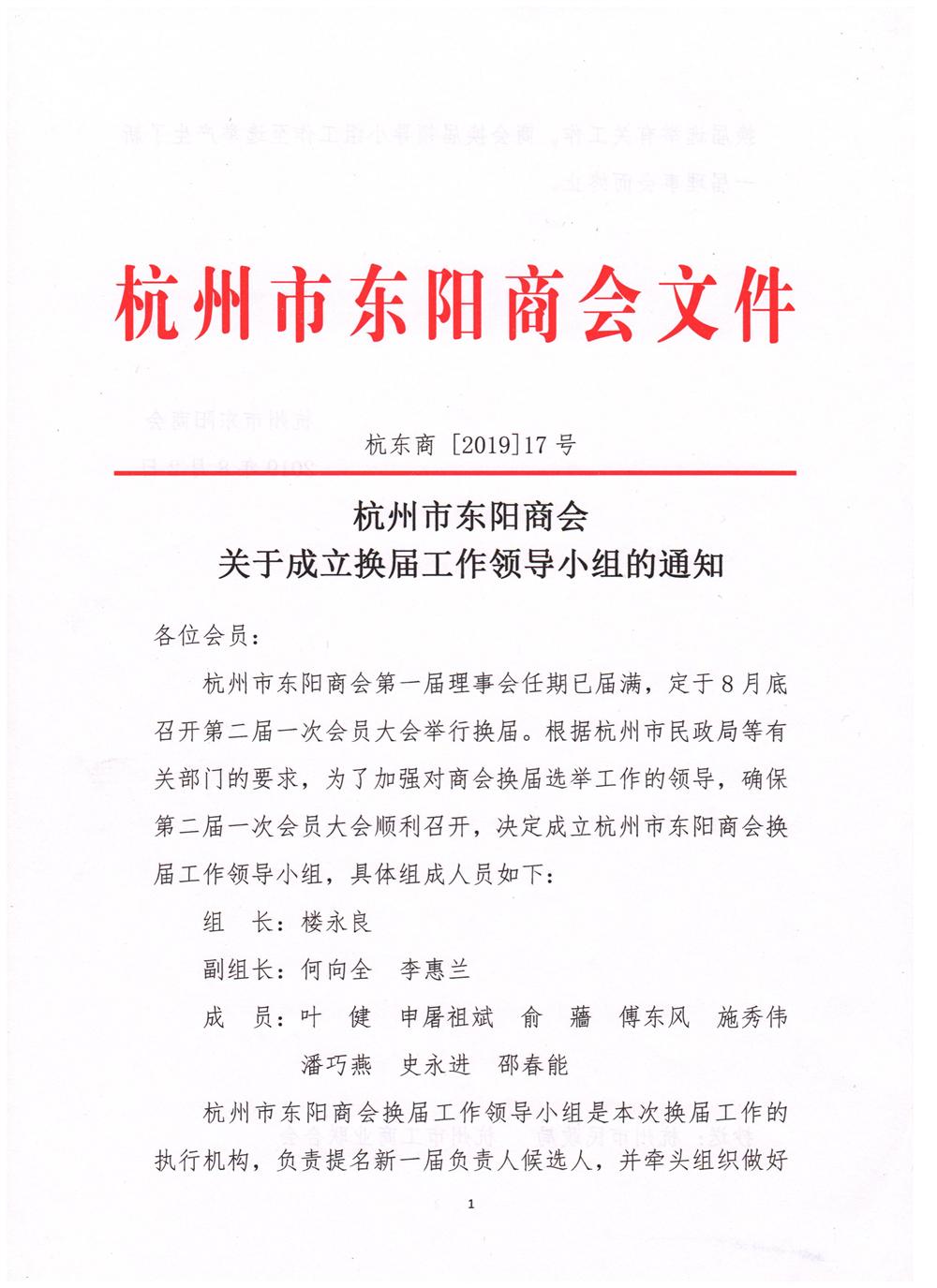 杭州市东阳商会关于成立换届工作领导小组的通知