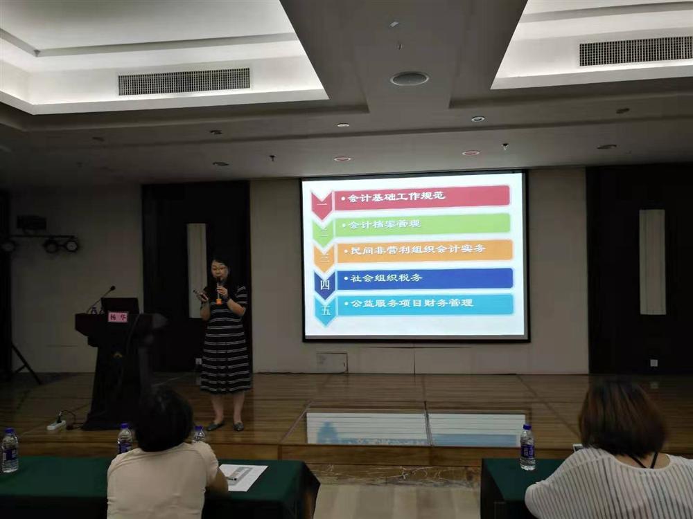 在9日上午的社会组织财务知识培训中,杨华老师从会计基础工作规范、会计档案管理、民间非营利组织会计实务、公益服务项目财务管理等几个方面为大家进行深度讲解,让从事社会团体财务的工作人员能够更好的了解并做好这方面的工作。