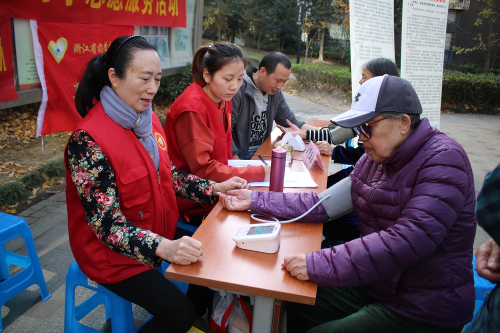 11月14日,杭州市东阳商会联合浙江省医药包装药用辅料行业协会、省执业药师协会等10位志愿者前往西湖区圣苑小区开展2019全省“安全用药月”志愿者服务进社区活动。