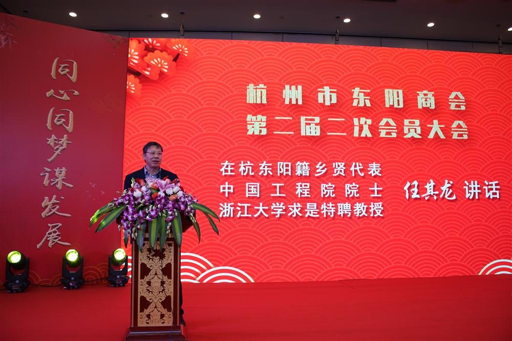 晚会上,浙江大学求是学院特聘教授、博士生导师、新晋中国工程院院士任其龙教授代表在杭东阳籍乡贤发表了热情洋溢的讲话。对商会邀请参加本次活动表示由衷的感谢,这让他感受到了来自家乡的关怀。