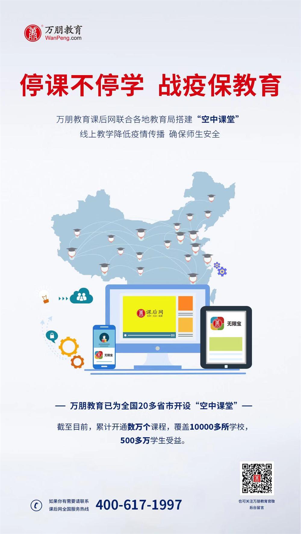 杭州市东阳商会常务副会长单位浙江万朋教育科技股份有限公司(以下简称“万朋教育”)面对疫情蔓延学校延期开学,但孩子们的教育不能耽搁。公司迅速展开行动,1月25日就宣布课后网“空中课堂”支持湖北各市有序开展教学和教研工作。随着疫情的发展,各地纷纷推出延期开学通知,万朋教育马上推出针对全国的公益平台支撑计划。